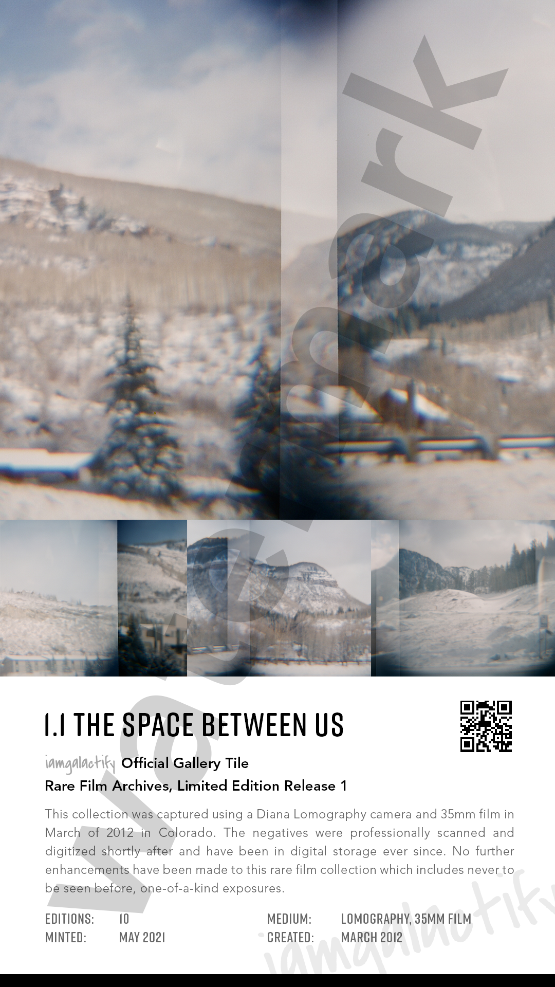 Our 1.x Film Archives NFT collection was captured using a Diana Lomography 35mm film camera in March of 2012 in Colorado. The negatives were professionally scanned and digitized shortly after and have been in digital storage ever since. No further enhancements have been made to this rare film collection which includes never to be seen before, one-of-a-kind exposures.